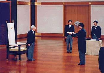 任免につき天皇の認証を必要とする国務大臣その他の官吏(認証官といいます)の任命式です。