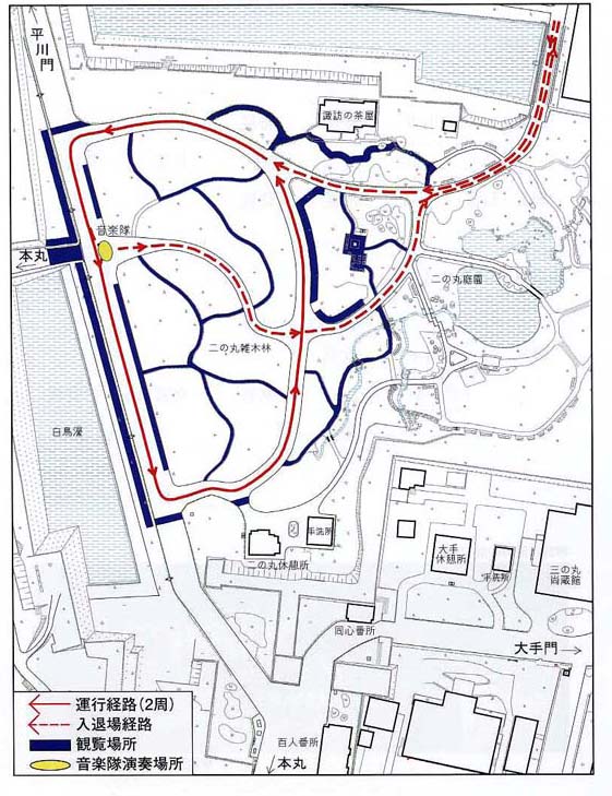 皇居東御苑における御即位20年記念儀装馬車運行の運行経路