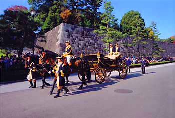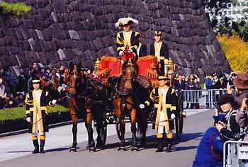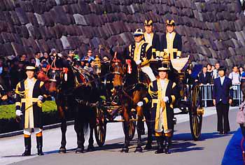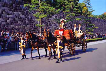皇居東御苑における御即位20年記念儀装馬車運行の写真
