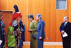 綾子舞出演者に声をおかけになる天皇皇后両陛下(柏崎市立南中学校)(柏崎市)
