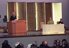 第23回国際測地学・地球物理学連合2003年総会歓迎式典でおことばを述べられる天皇陛下(札幌コンベンションセンター)(札幌市)
