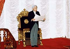 第157回国会開会式でおことばを述べられる天皇陛下(国会議事堂)