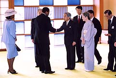 第3回アフリカ開発会議に出席する各国首脳夫妻とお会いになる天皇皇后両陛下(宮殿)