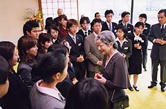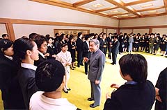 平成15年度日本青年海外派遣団員たちとお話しになる天皇皇后両陛下(宮殿)