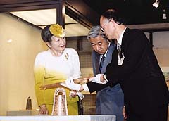 島根県教育庁埋蔵文化財調査センターをご視察になる天皇皇后両陛下(松江市)