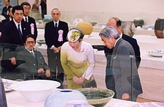 第50回日本伝統工芸展をご覧になる天皇皇后両陛下と桂宮殿下(日本橋三越本店)