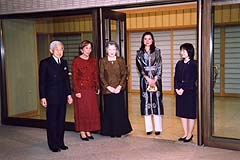 ヨルダン王族バスマ殿下・同令嬢をお出迎えになる天皇皇后両陛下と紀宮殿下(御所)