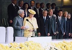 第58回国民体育大会秋季大会でおことばを述べられる天皇陛下(エコパスタジアム)(袋井市)
