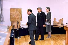 宮内庁書陵部特別展示会「埴輪IV-大和盆地北部の出土品-」をご覧になる天皇皇后両陛下