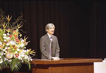 第2回トゲウオ全国サミットin Onoでおことばを述べられる文仁親王殿下(大野市)