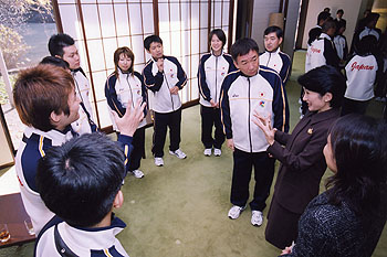 第20回デフリンピック日本選手団代表と手話を交えお話しになる文仁親王同妃両殿下(宮邸)
