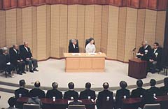 On 10 April 1959, Crown Prince Akihito married Miss Michiko Shoda, daughter of a distinguished businessman. Dr. Shinzo Koizumi, who supervised the Crown Prince’s education for many years, said of this marriage: “The Crown Prince chose her, and so did we.” In accordance with the Imperial House Law, the Imperial House Council, headed by the Prime Minister, gave its unanimous consent to the marriage. The whole nation was enchanted by the traditional wedding ceremony and the splendid open horse-carriage procession that followed. It was one of the happiest days in the history of post-war Japan.