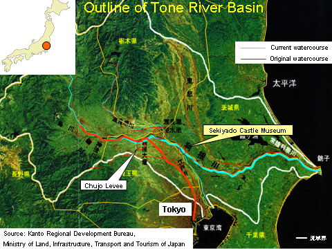 The Tone River has the largest basin in Japan today and serves as an important source of water supporting the livelihood and industrial needs of the capital area (Figure 7). In pre-modern times (before the 16th century) the river followed in quite a different course from its current course.
