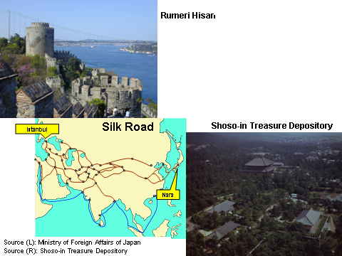 Istanbul is connected to Nara through the Silk Road (Figure 20). As a proof the Shoso-in Treasure Repository in Nara houses white cut glass bowls and vases made in Iran during the Sasan dynasty as well as crowns decorated with coral beads, which were worn by sovereigns in the 8th century. They are thought to have been carried over the great distance from the Mediterranean by way of Turkey. Having thought about the ties and interaction through the Silk Road over centuries, I am deeply moved at the opportunity of being with you in Istanbul (Figure 21).