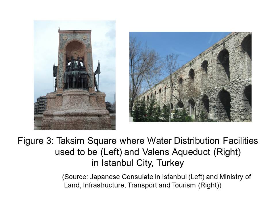 I often visit water facilities when I make visits abroad. When I attended the Water Expo (Fig.1) in Zaragoza, Spain in 2008, I visited the remains of watermills in Toledo(Fig.2). Also among those facilities are the old water distribution facilities and aqueduct in Istanbul (Fig.3), Turkey which I visited in 2009, and the Muea Irrigation Facilities in Kenya (Fig.4), and the Roman aqueduct I visited in 2010. Through those visits, I was deeply impressed by the wisdom of local people to make efficient use of water in accordance with their culture and society. I am certain that many of you who are present here have had similar experiences due to your broad interest in water issues.
