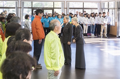 天皇皇后両陛下は,皇居内の清掃奉仕のため全国各地から集まる人々とお会いになっています。