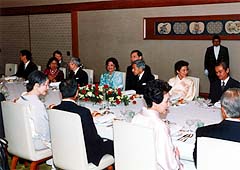 公式実務訪問賓客とは,外国の元首,王族,行政府の長あるいはこれに準ずる者が実務を主たる目的として訪日することを希望する場合,賓客の地位,訪問目的に照らして政府が公式に接遇し,皇室の接遇にもあずかる賓客で,その招へい・接遇は閣議了解を経て決定されます。皇室においては,賓客に応じたご接遇が行われています。