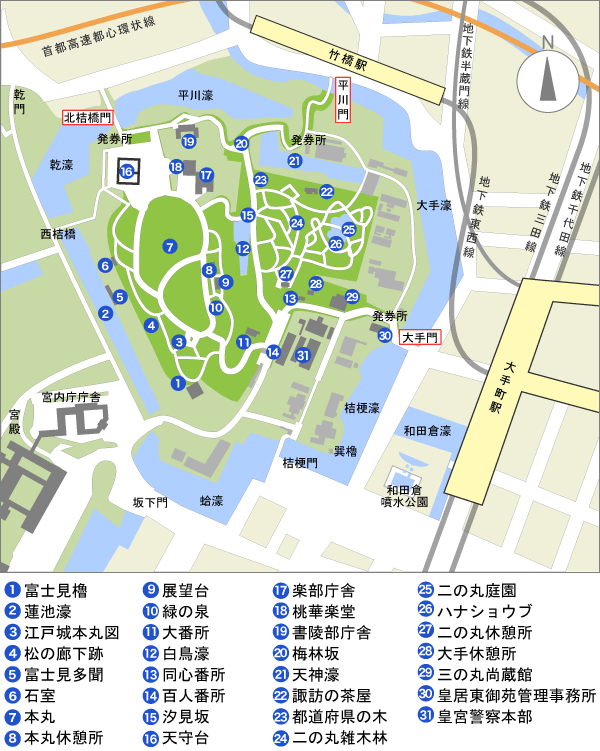 皇居東御苑の略図