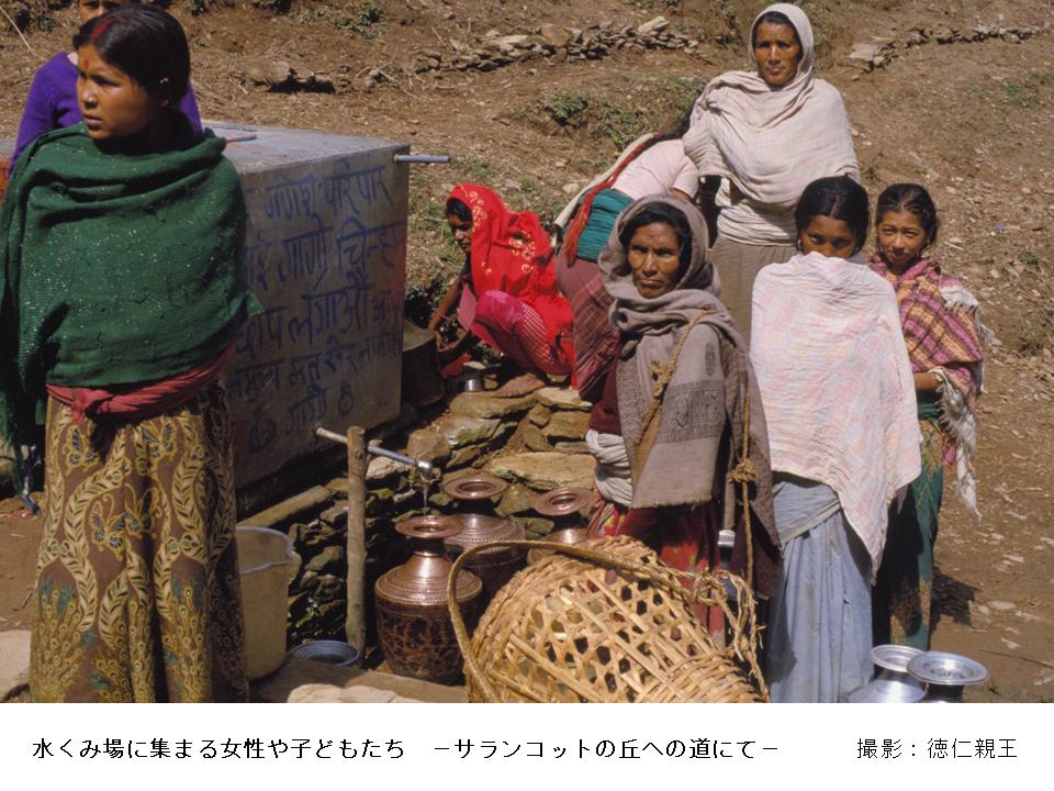 まずはじめに,この写真をご覧ください(図1)。これは,私が1987年にネパールのポカラを訪れた際,サランコットの丘付近で撮影したものです。水を求めて甕を手に,女性や子どもが集っています。ご覧いただくように,水は細々としか流れ出ていません。「水くみをするのにいったいどのくらいの時間が掛かるのだろうか。女性や子どもが多いな。本当に大変だな」と,素朴な感想を抱いたことを記憶しています。