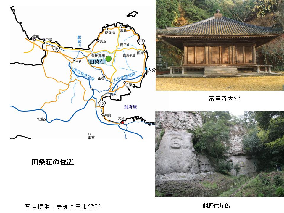 幸いなことに,当時の荘園村落の姿が今に残されています。また,付近には,富貴寺や真木大堂,熊野磨崖仏といった国東半島を代表する文化財が残されているなど,歴史的魅力に富んだ場所となっています(図8)。