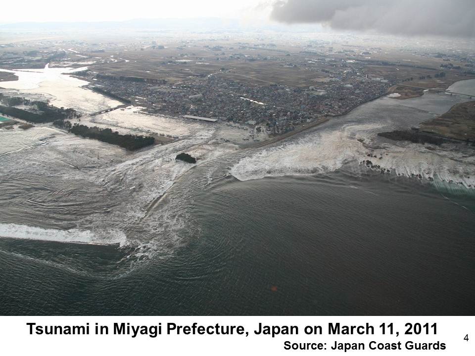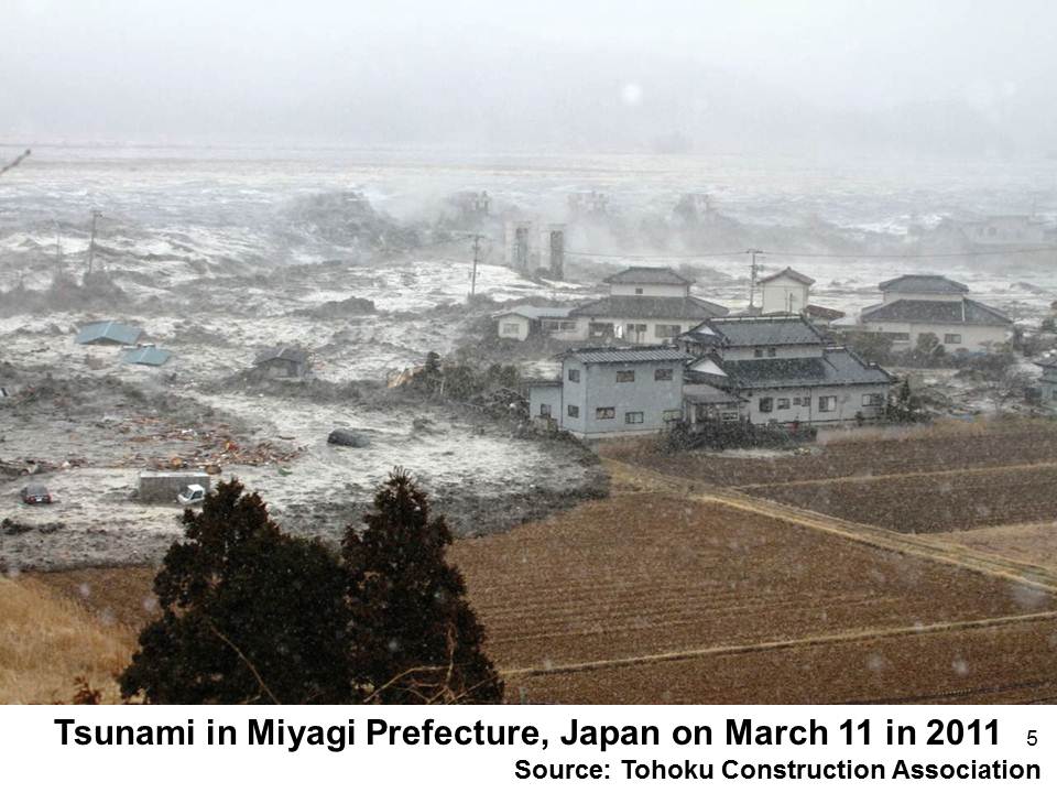 2011年3月11日に発生した『東日本大震災』は,死者・行方不明者を合わせて18,574名(2013・2・27警察庁)という激甚な被害をもたらしました。ここに,改めて,亡くなられた方々の御冥福をお祈りするとともに,被災された方々に心から御見舞いを申し上げます(図4)(図5)。