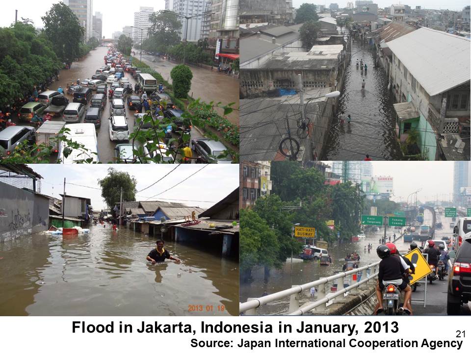 タイでは2011年に首都バンコクを含む広範囲な地域が浸水し(図20),インドネシアでは今年1月に首都ジャカルタで豪雨災害が発生,周辺国を含む広い地域の社会経済に大きな影響を与えました(図21)。