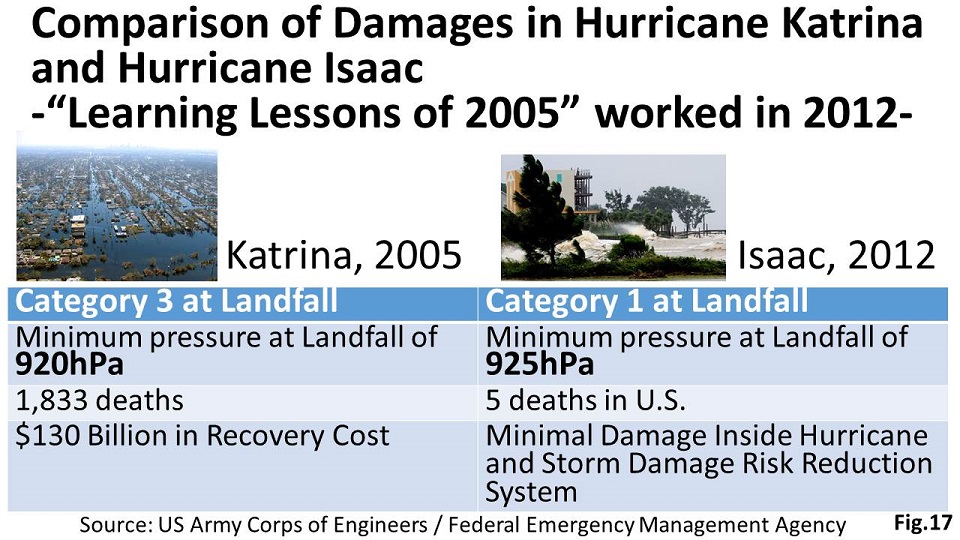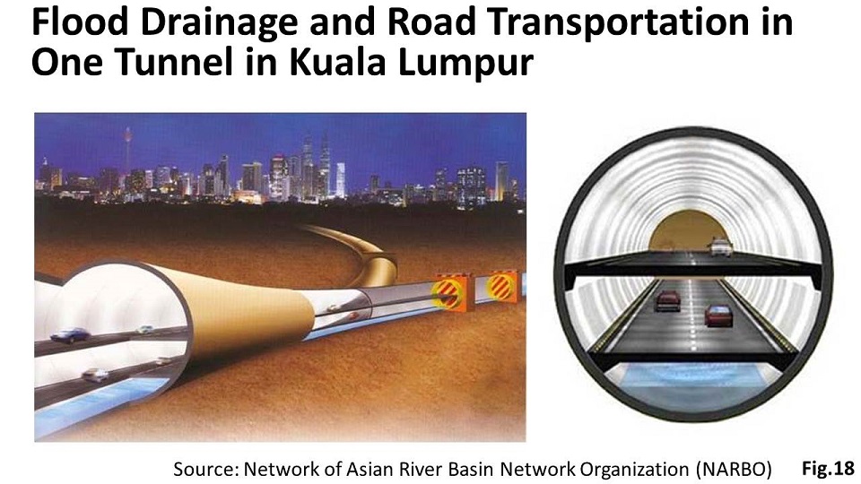 米国では,2005年のハリケーンカトリナの経験に基づき災害対策が向上し,2012年のハリケーンアイザックやハリケーンサンディでは大幅に被害が減少したと伺いました(図-17)。マレーシアでは,道路交通と洪水排水の二つの目的を兼ねたトンネルが建設され,都市交通の円滑化と洪水の軽減に効果を発揮していると伺っています(図-18)。フランスでは,OECDと共同し,セーヌ川での洪水がパリ首都圏に及ぼす影響と包括的な対策が検討されていると伺いました(図-19)。