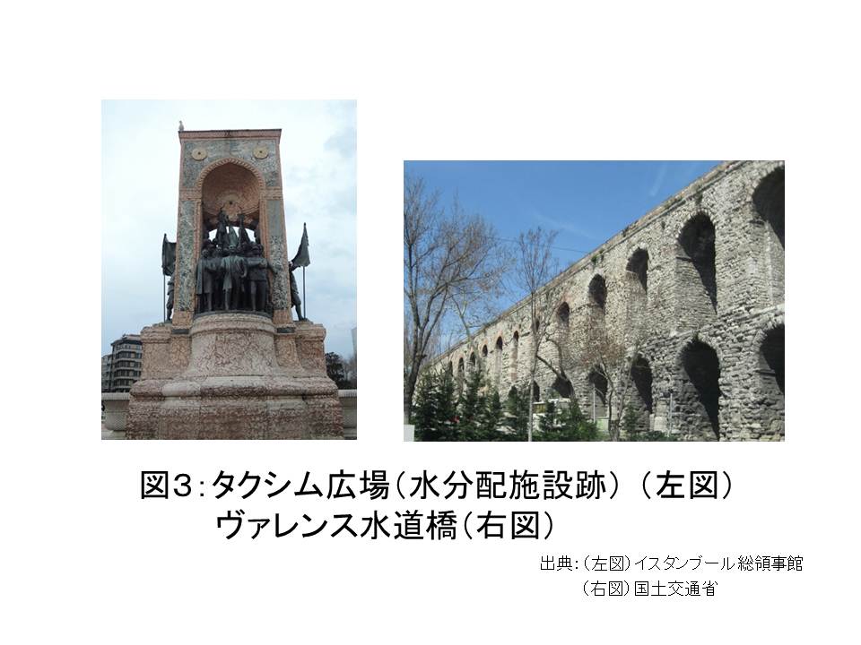 私が2008年,世界水博覧会(図1)に出席するために,スペイン・サラゴサを訪れた際にはトレドの仕掛け水車跡地(図2)を,2009年トルコ・イスタンブール訪問では分水施設跡や水道橋(図3)を,2010年にはケニアのムエア灌漑施設(図4)やローマの水道橋を訪れるなど,世界各地の水に関する施設を視察し,それぞれの施設でその地の文化や社会に合わせた水を賢く利用する工夫が凝らされていることに深い感銘を覚えました。本日ご出席の皆さんの多くは水に広く関心をお持ちですので,水に関する施設を訪れた際に同じような感想を持ったことがあるのではないでしょうか。