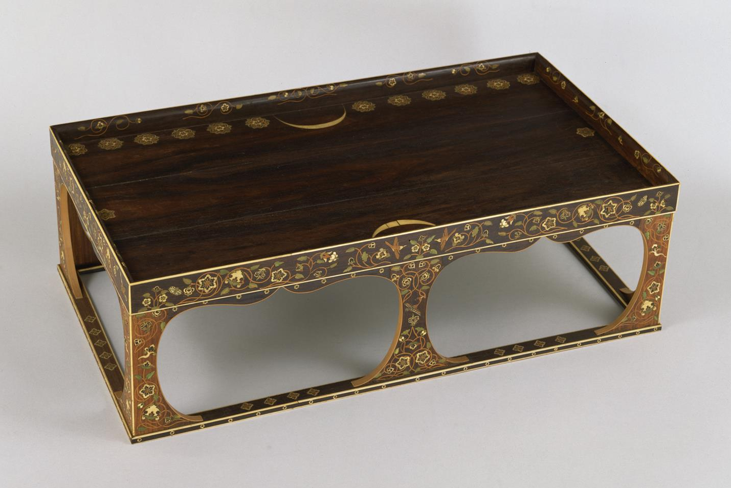 正倉院事務所からは、77件の宝物を出陳します。聖武天皇御遺愛品を中心とした北倉の宝物で、「国家珍宝帳(こっかちんぽうちょう)」※ に記載のある「木画紫檀双六局(もくがしたんのすごろくきょく)」が、サイコロ(「双六頭(すごろくとう)」)や駒(「水精双六子(すいしょうのすごろくし)」ほか)とともに展示されます。