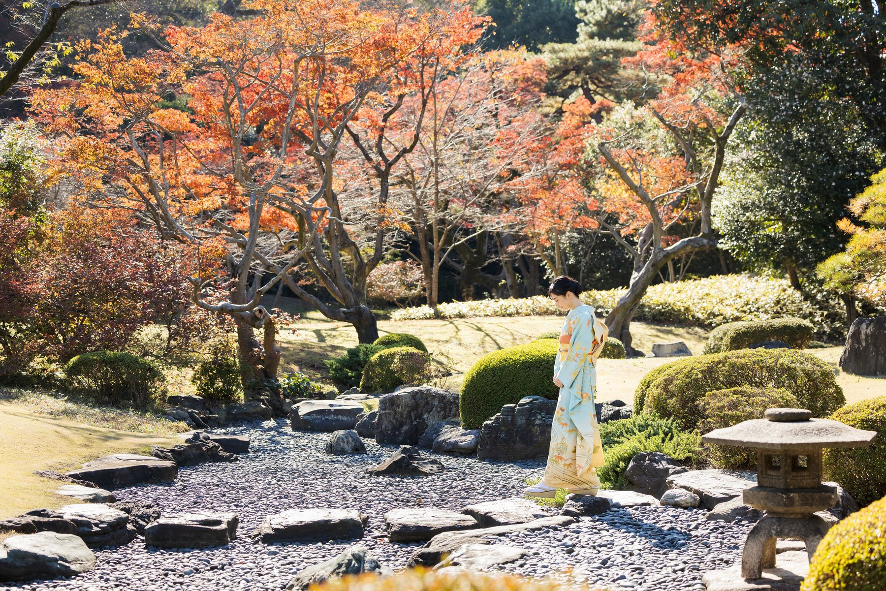 佳子内親王殿下が、赤坂御用地の中をお歩きになるご様子を撮影した映像です。橋を渡られ、枯山水の踏み石の上や、紅葉のきれいな木々が並ぶ道を、お歩きになり、時折立ち止まって風景をご覧になりました。映像の最後では、風がもみじの葉とお着物の袖を揺らし、撮影終了の合図にほほえんでうなずかれました。