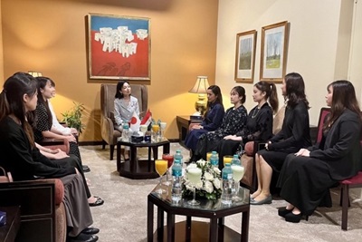 日本人関係者とご懇談になる彬子女王殿下