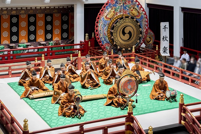 雅楽演奏会は、昭和31年から、文化団体や広く一般に公開するため、毎年春秋2回催されています。春季は文化団体や在日外交団を中心に3日間、秋季は一般の申込者のために3日間行われています。