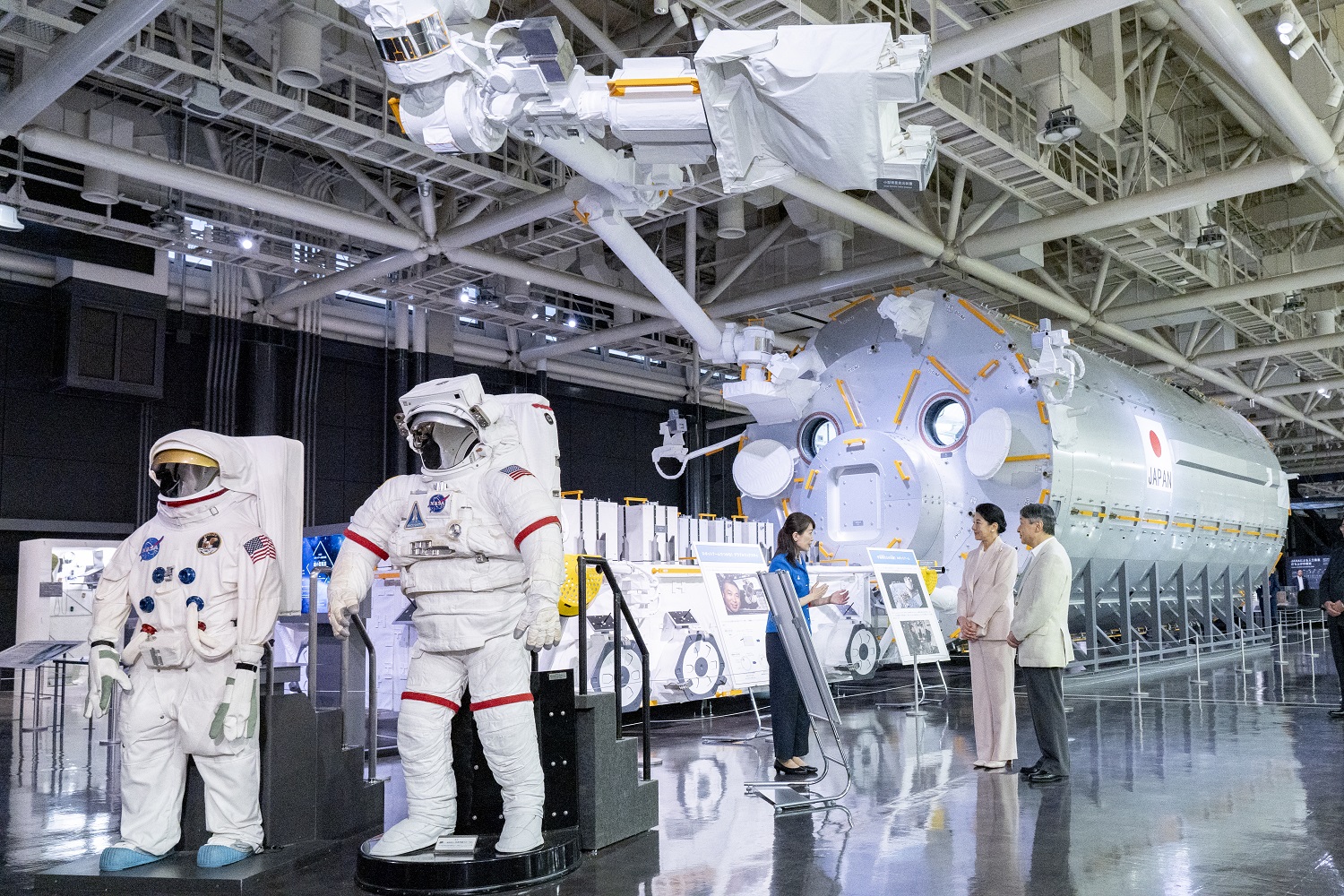 | 「きぼう」模型をご覧になる天皇皇后両陛下 | |