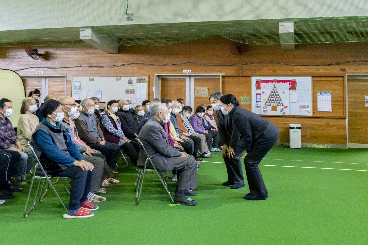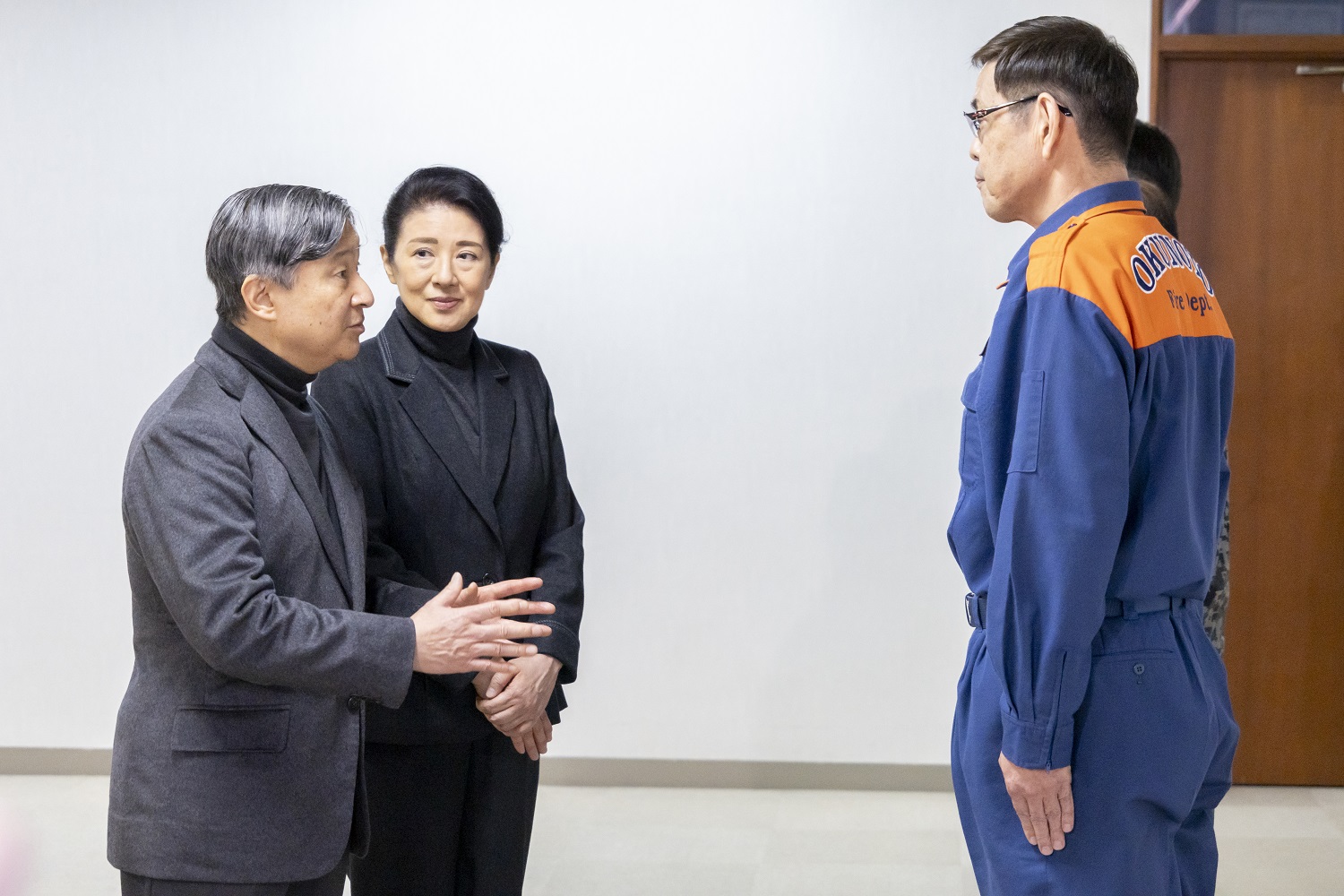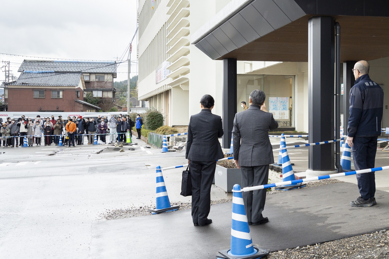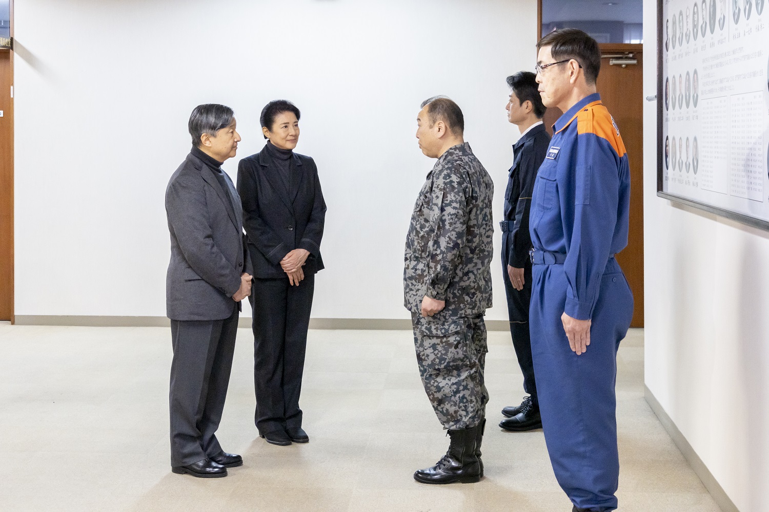 | 災害対応に尽力した方々をおねぎらいになる天皇皇后両陛下 (輪島市役所) |