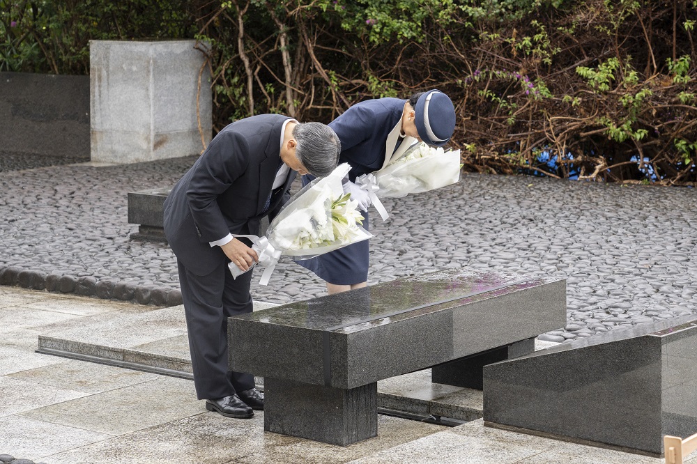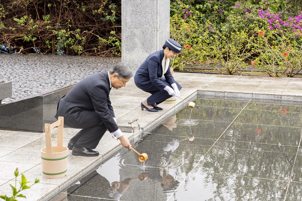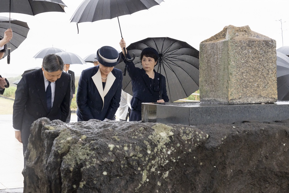両陛下は、硫黄島戦没者の碑(天山慰霊碑)、硫黄島島民平和祈念墓地公園、鎮魂の丘において、それぞれご拝礼になり、犠牲になられた多くの方々に深い哀悼の意を捧げられました。