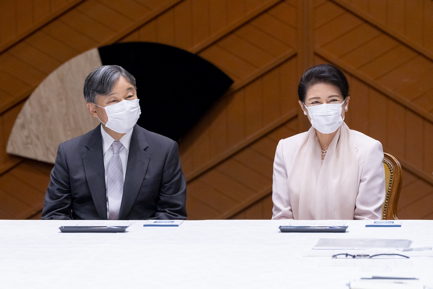 | ディスカッションをご視察になる天皇皇后両陛下 |