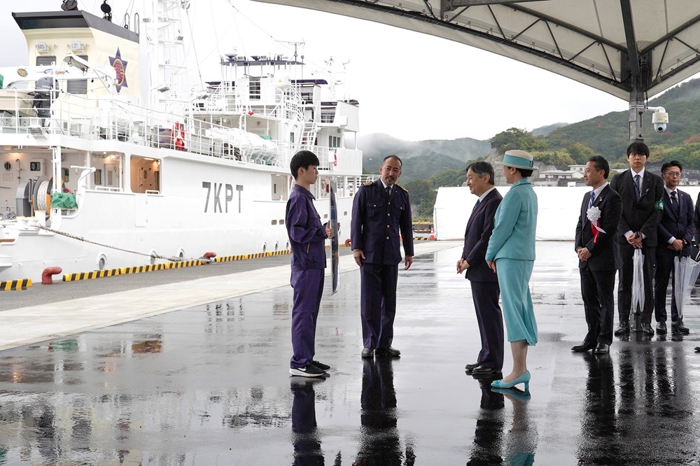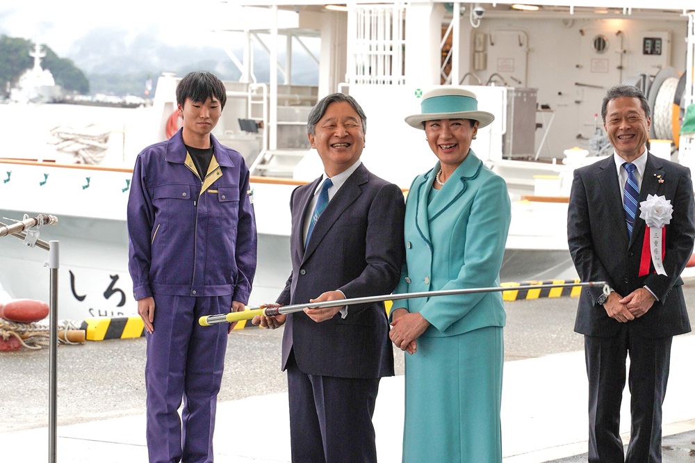 天皇皇后両陛下は、三重県立水産高等学校実習船しろちどりをご視察になりました。