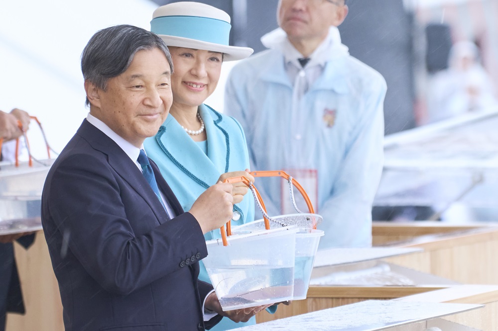天皇皇后両陛下は、宿田曽漁港において、海上歓迎行事及びご放流に臨まれました。