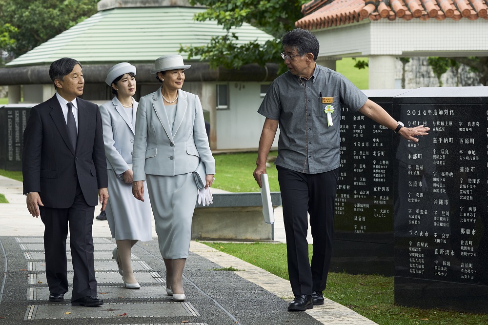 天皇皇后両陛下と愛子内親王殿下は、沖縄戦などで亡くなられた全ての人々の氏名を刻んだ記念碑である平和の礎(糸満市)をご覧になりました。