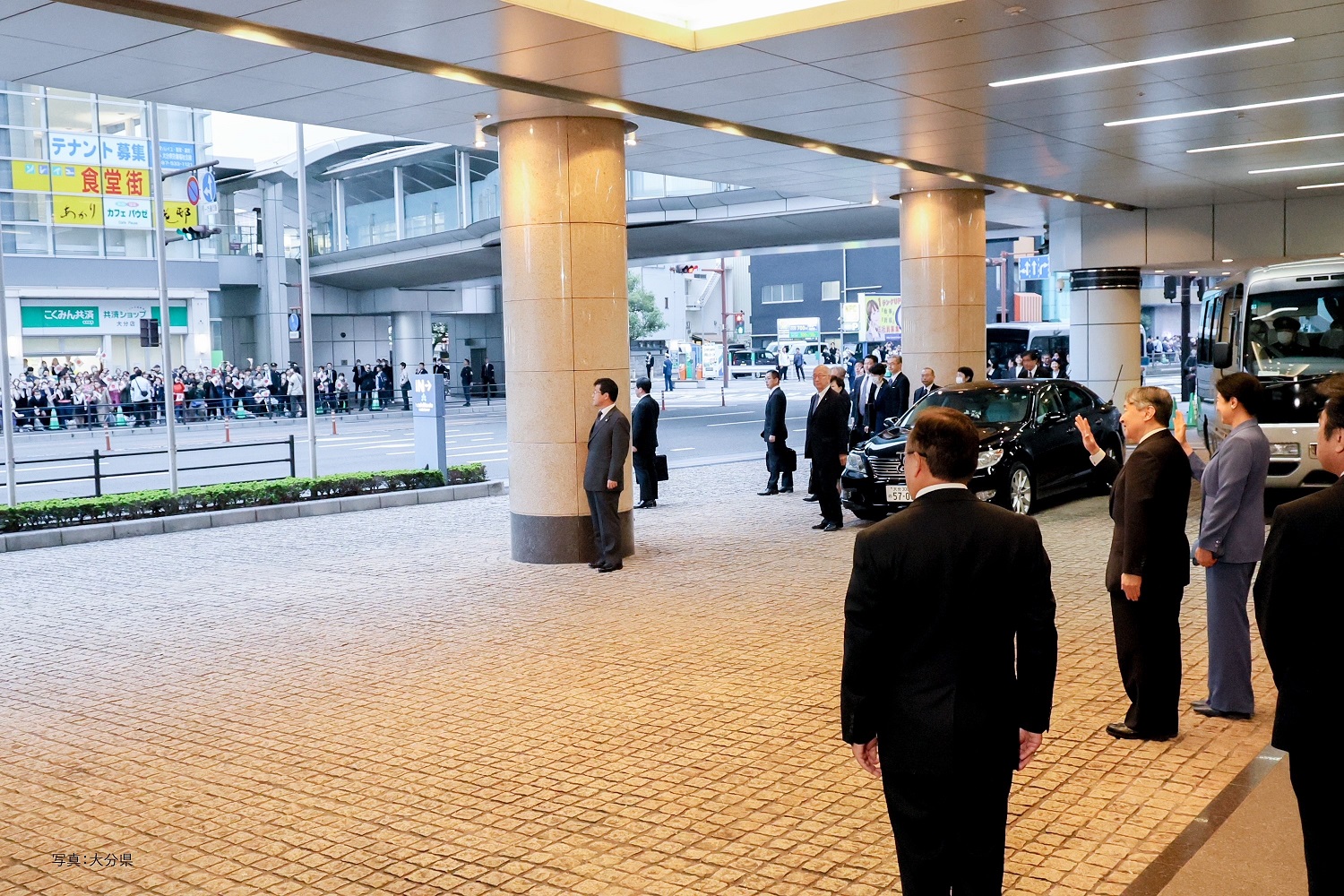 | お泊り所のホテルに到着された天皇皇后両陛下 (写真:大分県) |