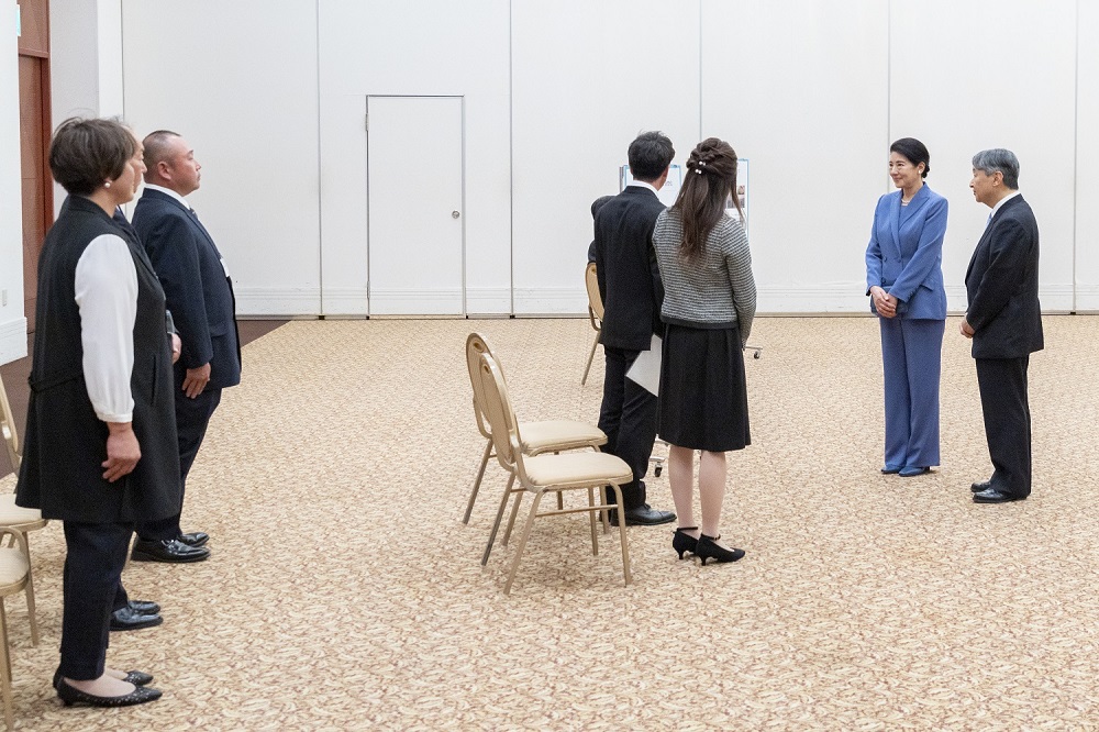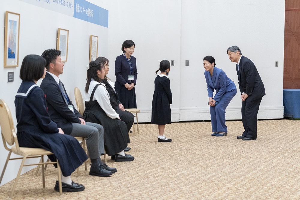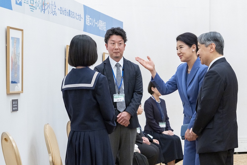 天皇皇后両陛下は、第43回全国豊かな海づくり大会絵画・習字優秀作品をご覧になりました。