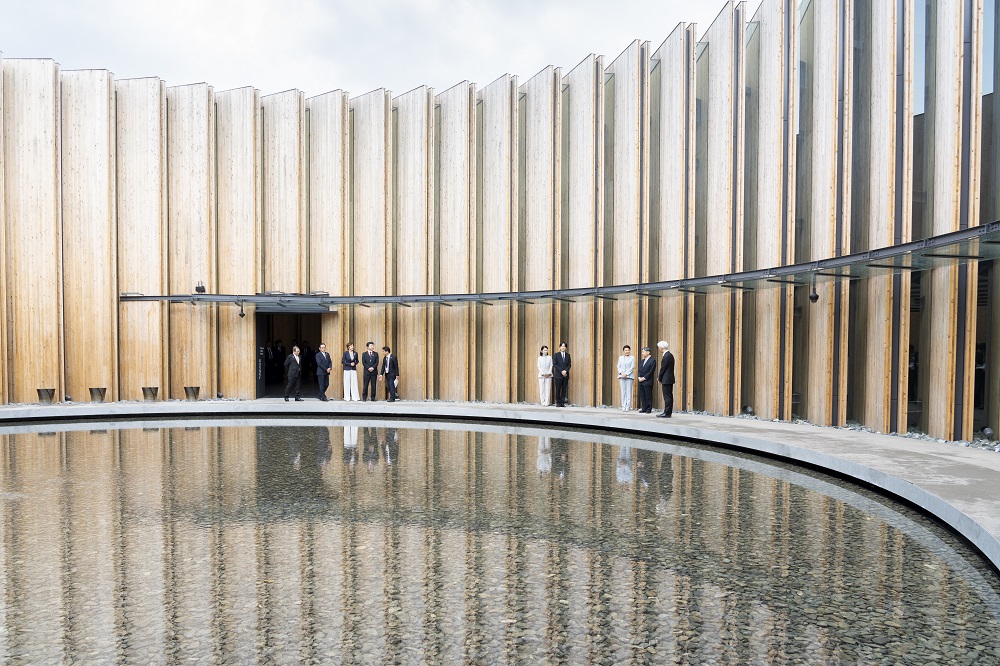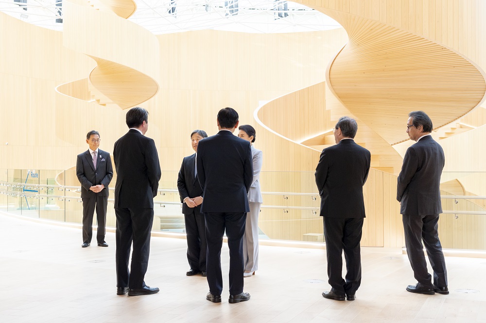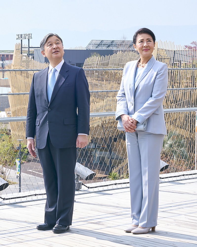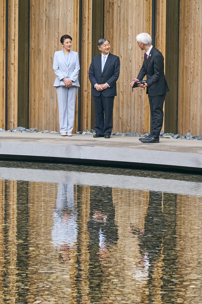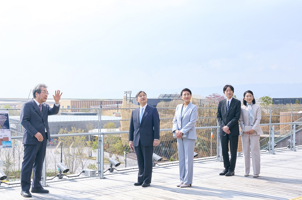 両陛下は、大屋根リングの大きさや、リングが伝統的な貫(ぬき)接合に現代の工法を加えて見事に造られていることにご感心になったほか、様々なパビリオンが大屋根リングの内に一つに集まり、「多様でありながら、ひとつ」であることが表現されていることを印象深く思われました。