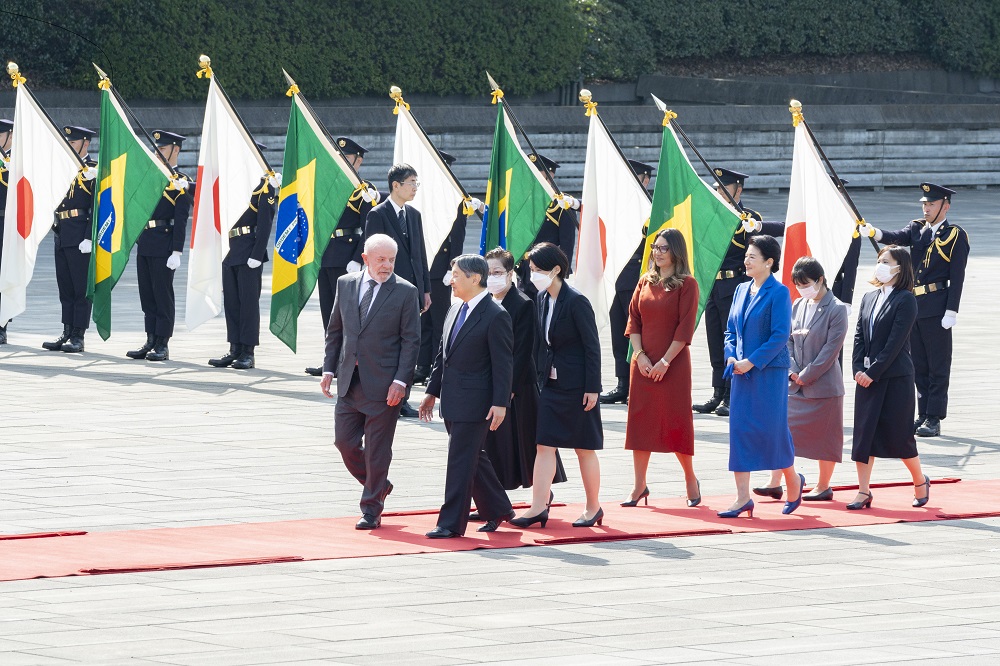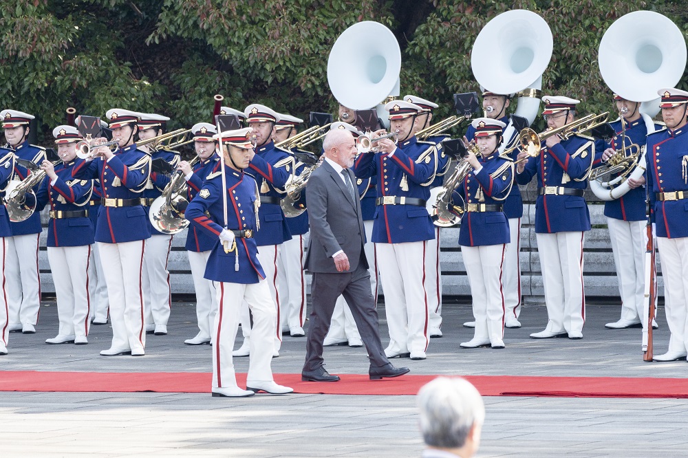 歓迎行事では、ブラジルと日本の両国国歌が演奏され、大統領閣下は、儀仗隊の栄誉礼を受けられた後、巡閲されました。