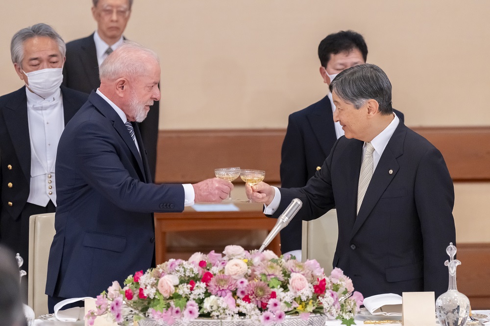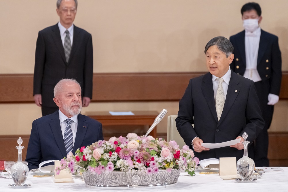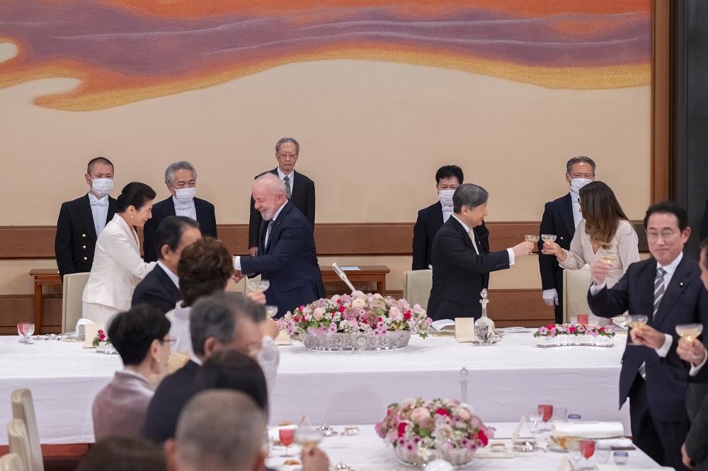 宮中晩餐で、天皇陛下は、大統領ご夫妻の我が国ご訪問が、実り多く、思い出深いものとなることを願われるとともに、ご夫妻のご健勝とブラジル国民の幸せをお祈りになり、杯をお挙げになりました。