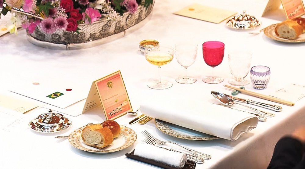 宮中晩餐では、今回新たに和食の前菜が提供され、江戸切子で日本酒が提供されました。大統領閣下及び同令夫人は和食にご関心がおありで、お食事を楽しまれたご様子でした。
