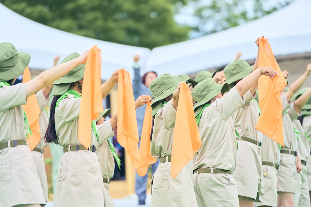 天皇陛下は、介添えの緑の少年団の子どもたち一人ひとりに、お声をお掛けになりました。