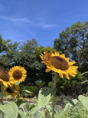 コロナ禍の頃、宮邸内で仕事をする時間が長くなってから、休みの日に身近な植物や土とふれることが多くなりました。この一年も、仕事の合間に花が好きな職員と一緒にチューリップなどの球根を植え、ヒマワリの種を蒔き、水やりや手入れをしました。育てた花は来客を迎える部屋に飾ったり、お世話になった方へ花籠や花束にして感謝の気持ちをこめて届けたりしました。